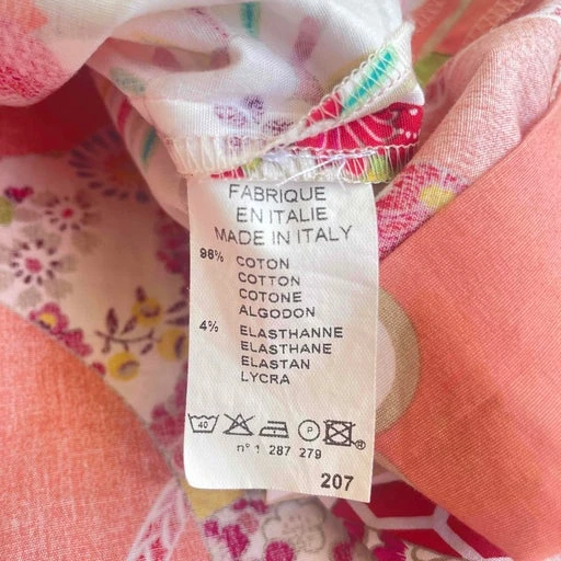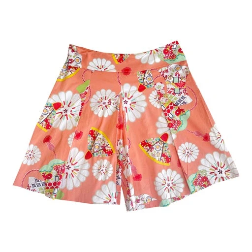 Bermuda Cacharel défilé printemps été 2001. Superbe imprimé fleuri. Rose saumon. Coupe oversized, plissé. Made in Italy. Taille étiquette : 38