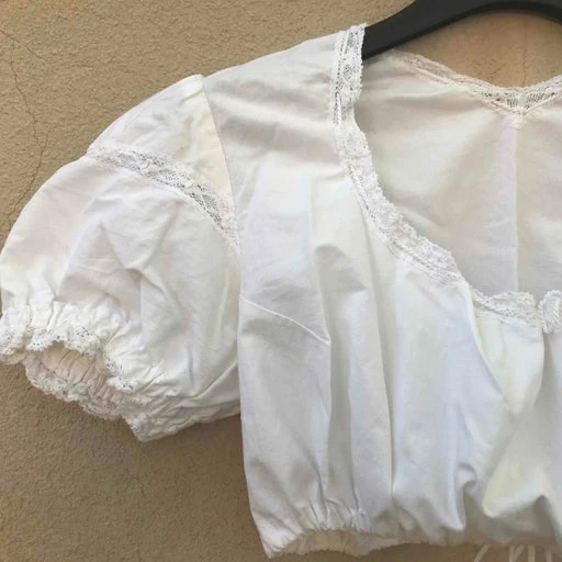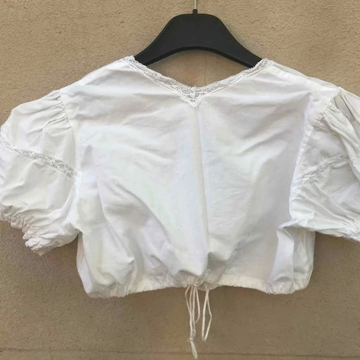 Blouse autrichienne en coton blanc et dentelle décolletée crop top.