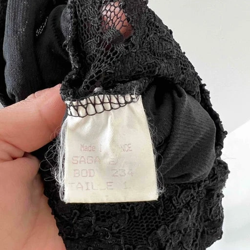 Body en dentelle épaisse vintage. Encolure danseuse V. Taille 36/38. Très bon état. Made In France.