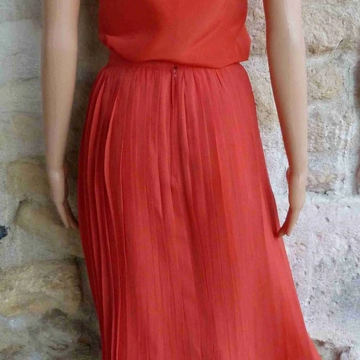 Ensemble jupe plissée et caraco en soie de la marque Céline – doublure pour la jupe en soie avec un crochet, un bouton pression et une fermeture éclair