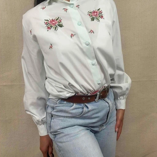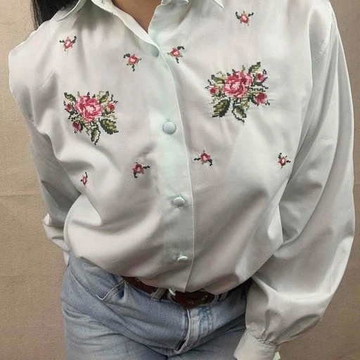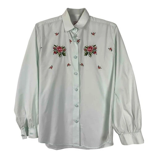 Chemise brodée en coton vintage couleur vert très pale. La modèle porte habituellement un 38. Idéal 38-40.