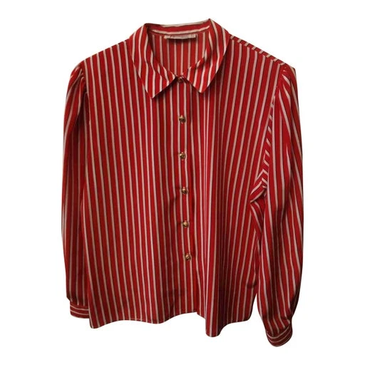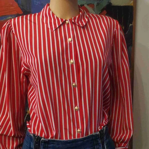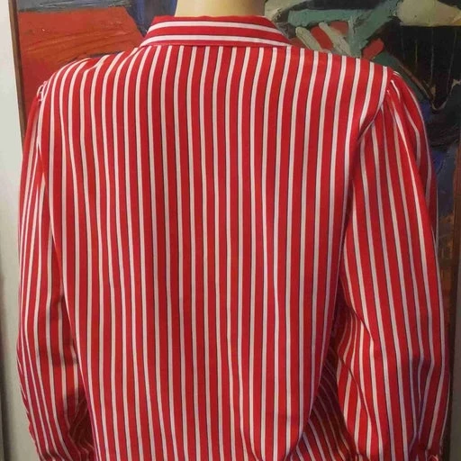 Chemise rayée, boutons dorés, en polyester, vintage des années 80, made in France.