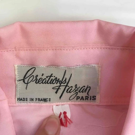 Chemise rose 70’s, col pelle à tarte typique, boutons d’origine. Taille 40. Made in France
