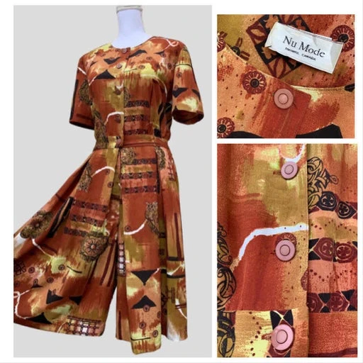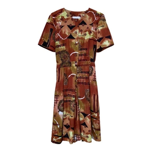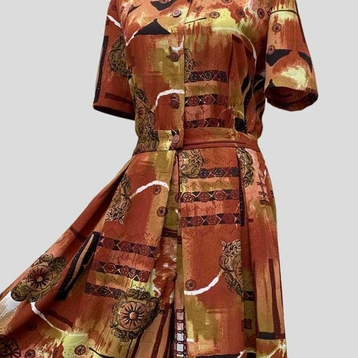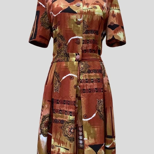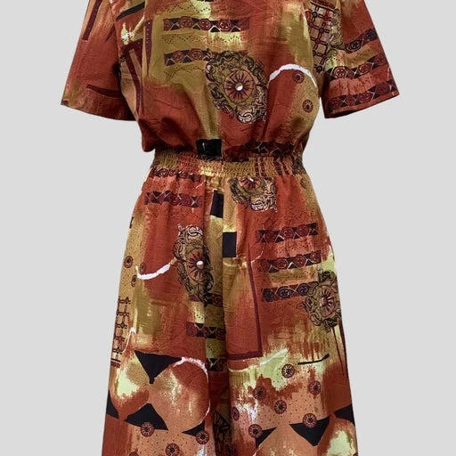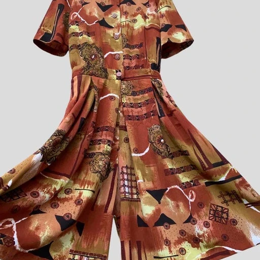Magnifique imprimé graphique dans des superbes tons : marron/brique/noir/kaki/blanc/jaune.