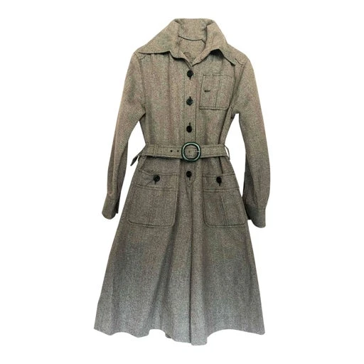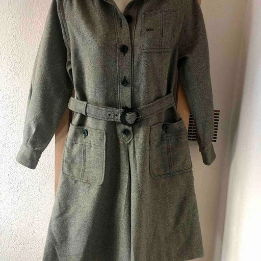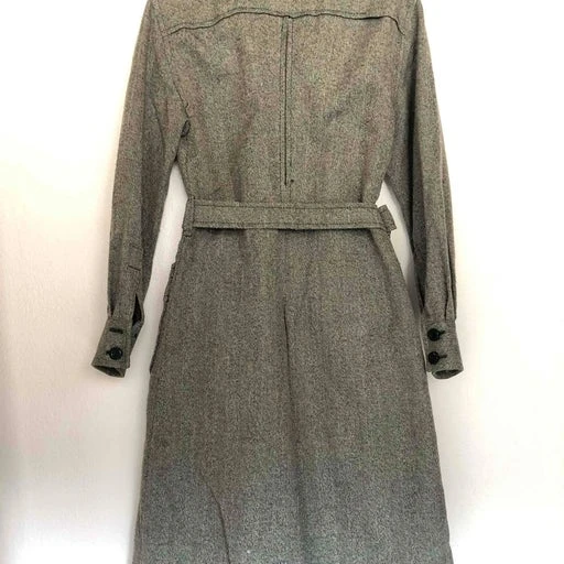 Combinaison jupe culotte en tweed. Faite à la main. Pour l’hiver portée avec des bottes et pull. En laine verte. Boutonnée devant avec ceinture.