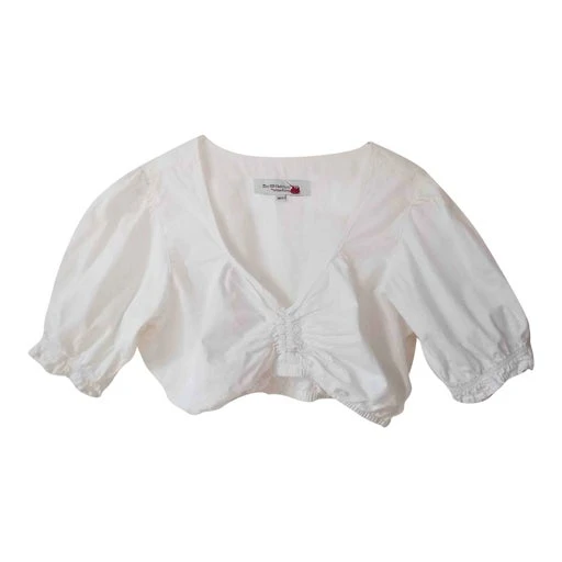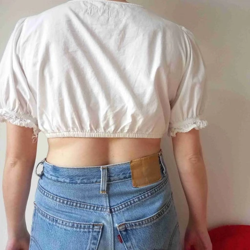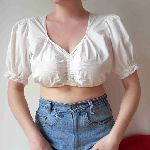 Crop top autrichien vintage des années 90, taille 40 et 42. Ajustable au centre grâce à un lien à louer. Composition 100% coton. Manches courtes, très confortable et en parfait état !