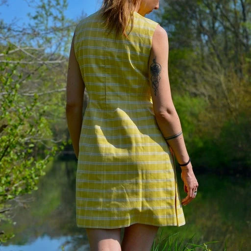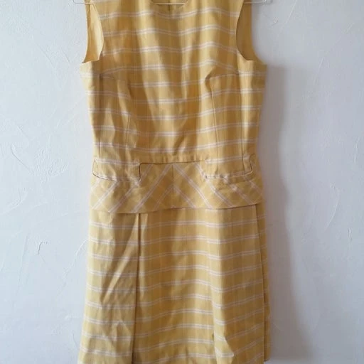 D’une jolie couleur jaune pâle à carreaux.