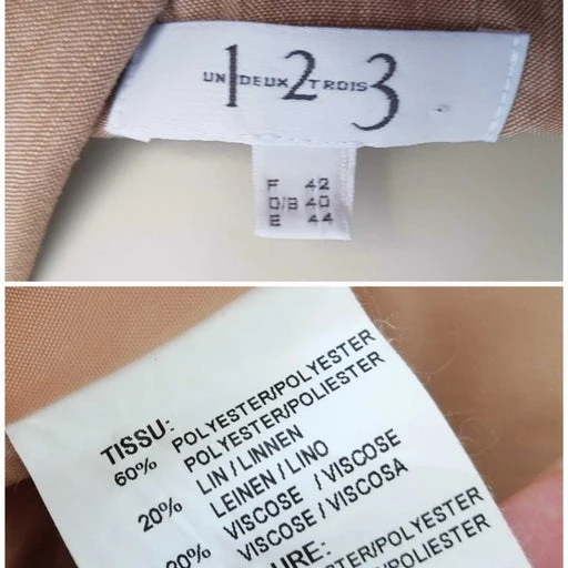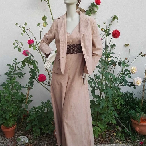 Ensemble veste et combinaison camel, de la marque 1.2.3, la veste avec épaulettes est doublée, à boutons.