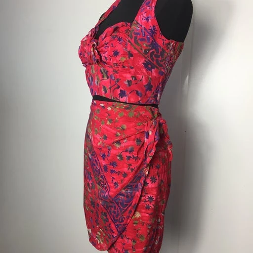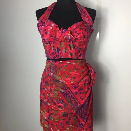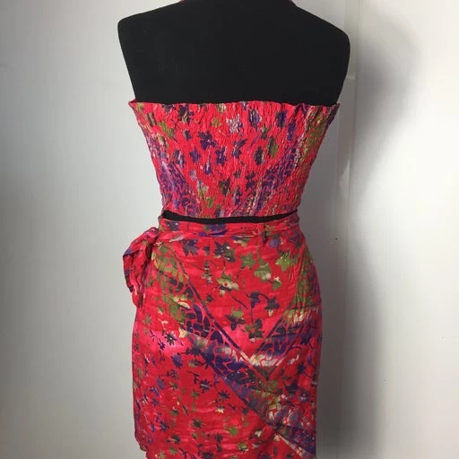 Ensemble 90’s rouge avec top froncé à l’arrière et jupe portefeuille. Conviendra du 34 au 38.