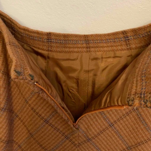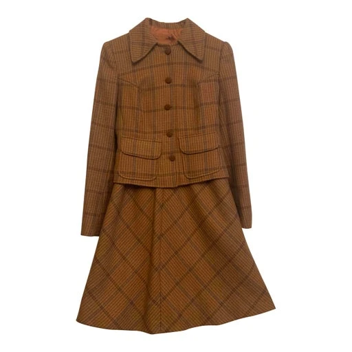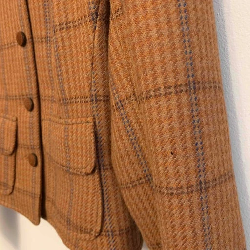 Imprimé style tartan très British camel avec des pointes de bleu.