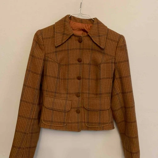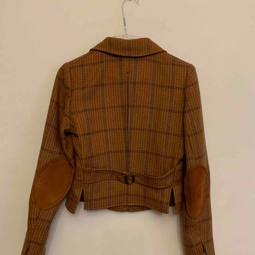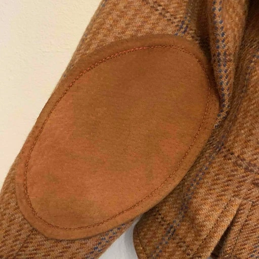 Détails sur la veste, plis coudières attachés et bouton, sans compter le superbe col pelle à tarte.