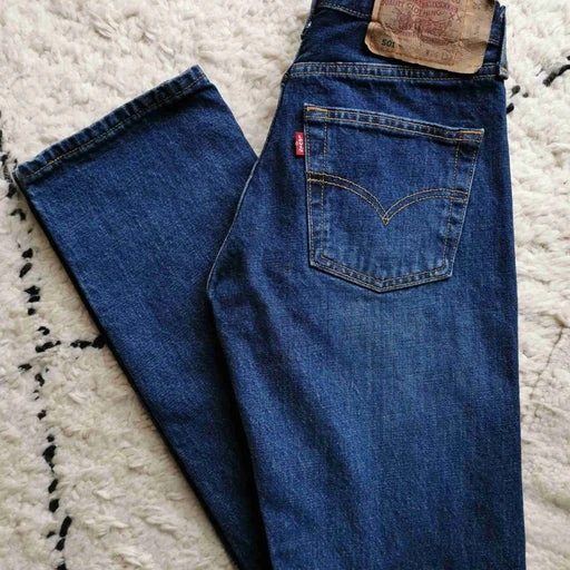 Jean Levi’s 501 W26L32. Bleu foncé et ourlets d’origine. Bien vérifier les mesures.