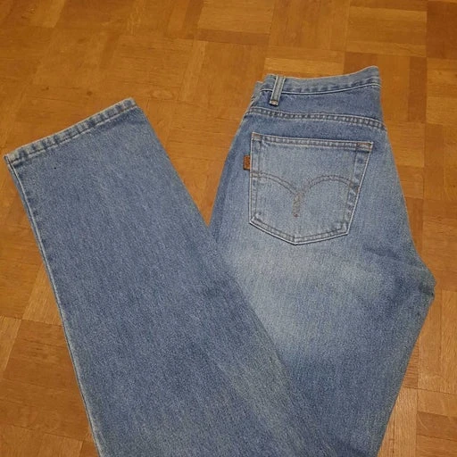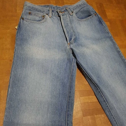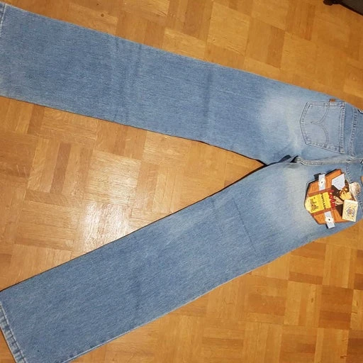 Jean Lois droit. Taille haute, jambe large. Vintage encore étiqueté, il n’a jamais été porté. Conviendra à une taille 38 mais assez grande (voir mesures longueur des jambes). Couleur bleu moyen. Une perle vintage!