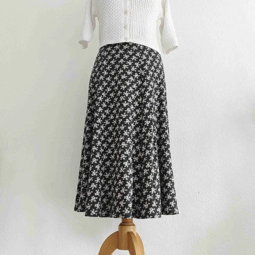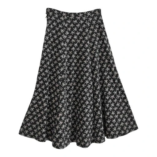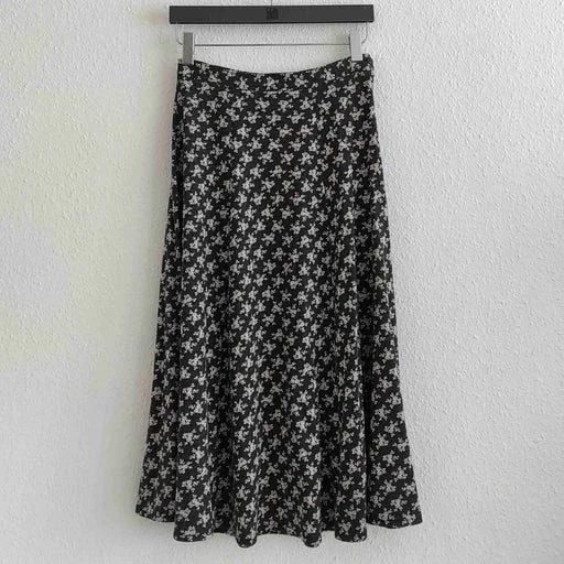 Jupe à fleurs formée de six pans. En jersey gris imprimé de petites fleurs blanches Fermeture éclair au dos. Excellent état