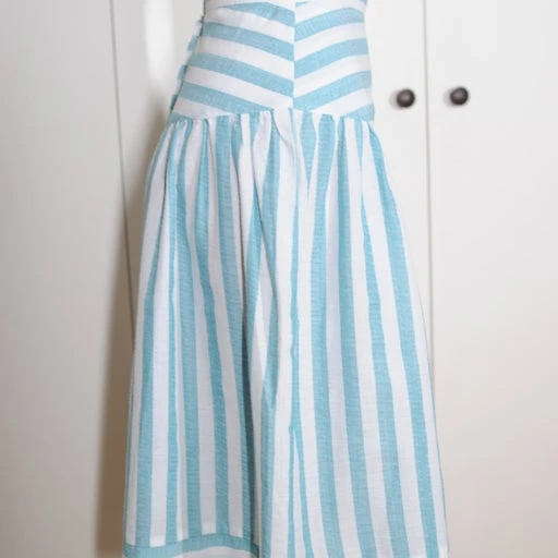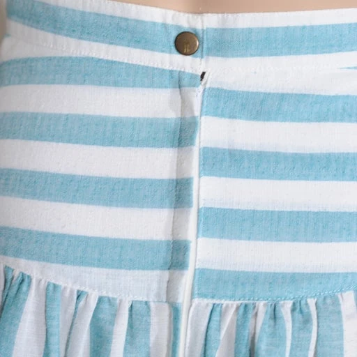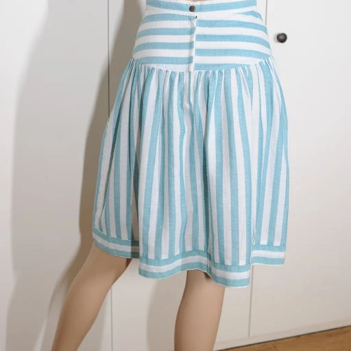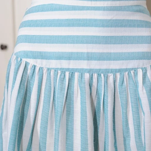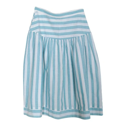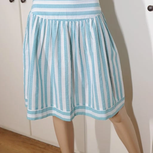 Jupe taille haute légère à rayures bleues et banches. En coton souple. Importée du Japon.