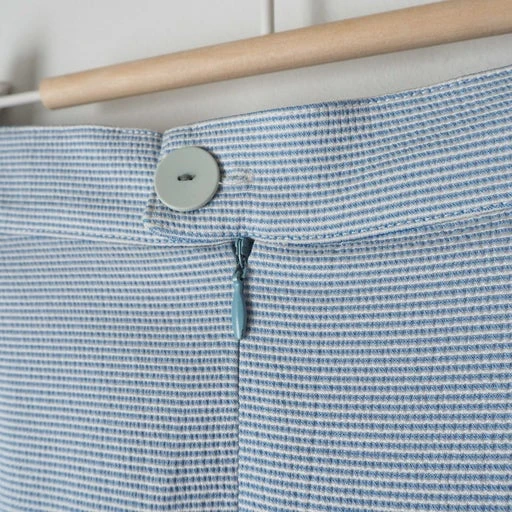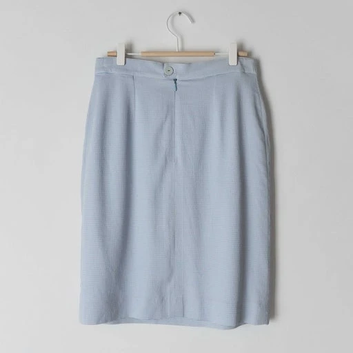 Jupe tailleur Nina Ricci à rayures bleues et blanches.