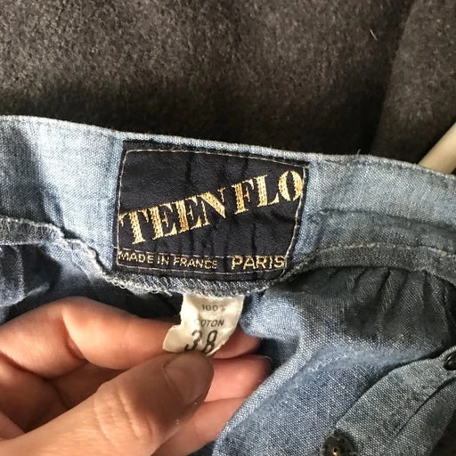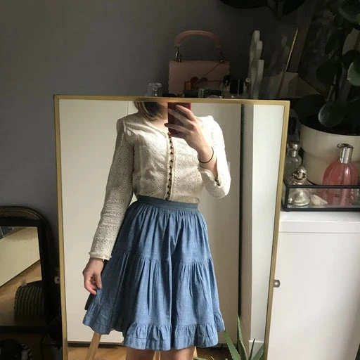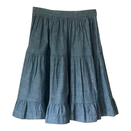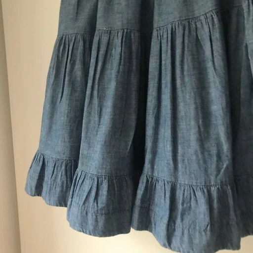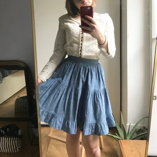 Jupe à volants, bleu, coton chambray, 100 % coton de belle qualité, fabriquée en France. Taille 38 mais fit également un 36.
