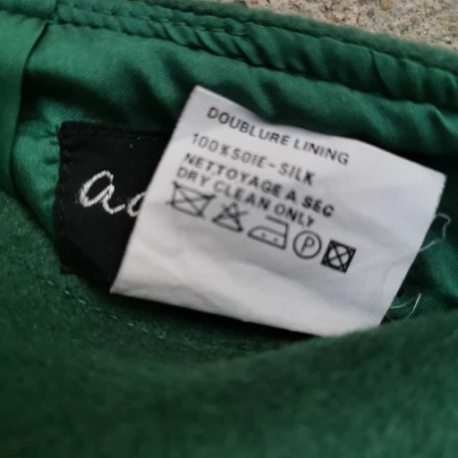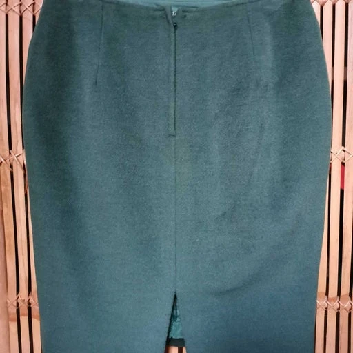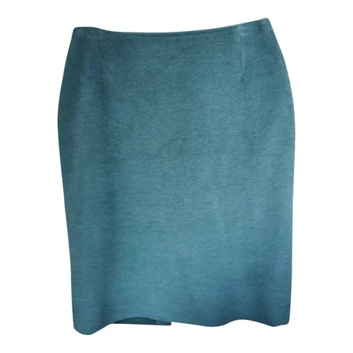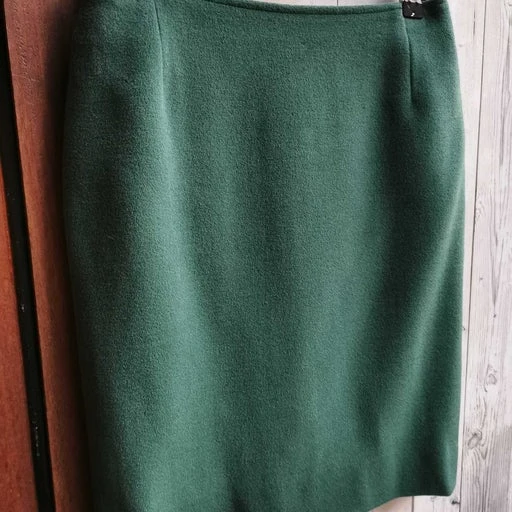 Jupe courte » Agnès B » verte en laine, angora et cachemire .