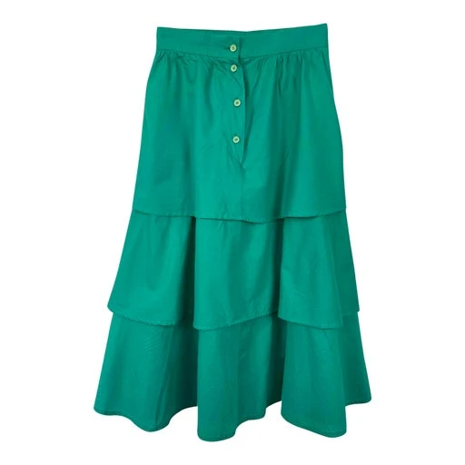 Jupe en coton Gérard Pasquier. Jupe midi à volants, couleur exacte en photo 1. Portée sur un stockman taille 34.