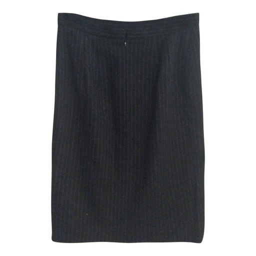 Jupe droite en laine de la marque Jil Sander, couleur noir, imprimé à rayures, se porte taille haute, fermeture à zip au dos. Pièce unique vintage des années 90, une véritable pépite vintage.