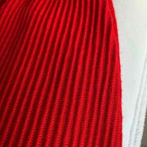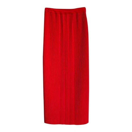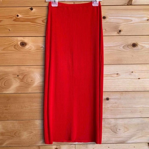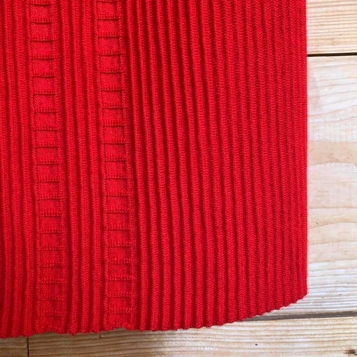 Jupe longue de la marque Dorothée Bis, taille haute, en laine mélangée, couleur rouge vif, extensible, taille élastique, texturée, non doublée. Une pièce unique vintage des années 90.