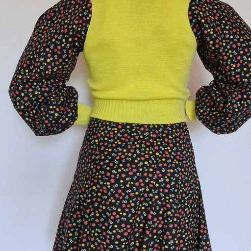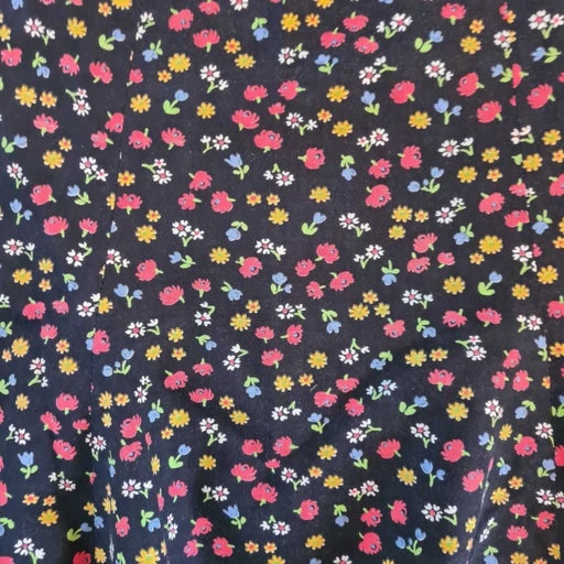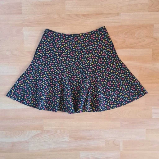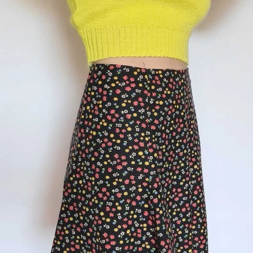 Jupe godet à fleurs sur un fond noir , fermeture éclair, taille haute , vintage des années 70
