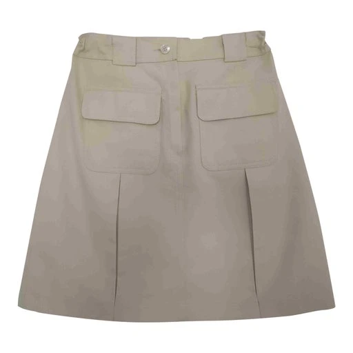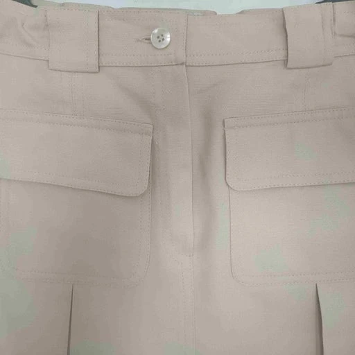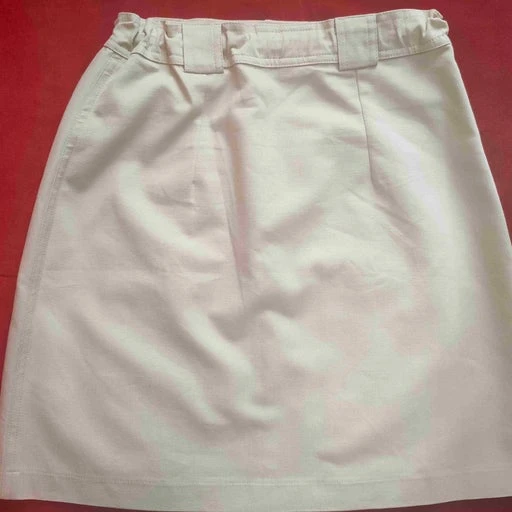 Mini-jupe trapèze en coton. Couleur écru. Élastique à la taille. Deux poches plaquées, fermées par rabat. Neuve. Made in Italy, débuts des années 90s. Taille 34-36.