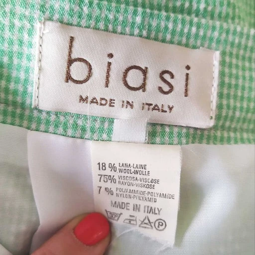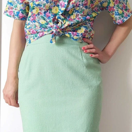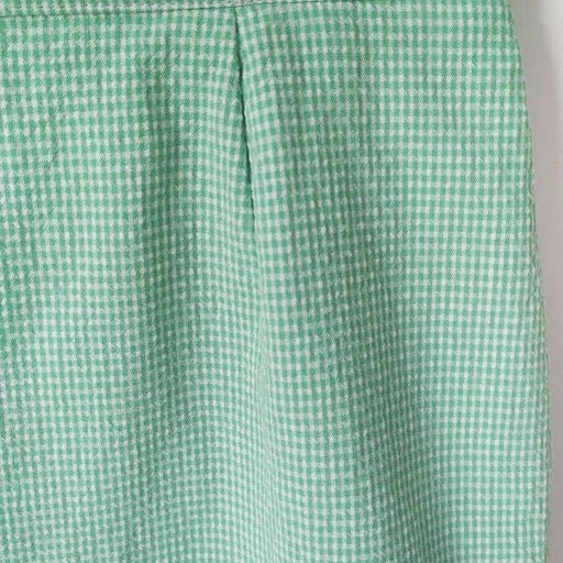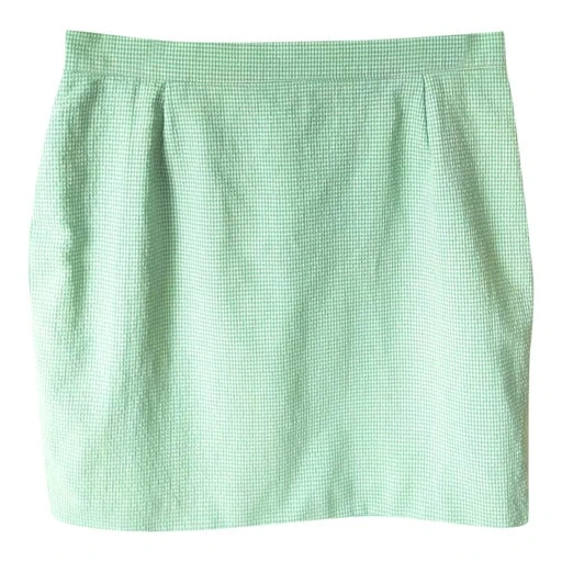 Mini-jupe vichy vert pomme, entièrement doublée, fermeture bouton au dos. Made in Italy.