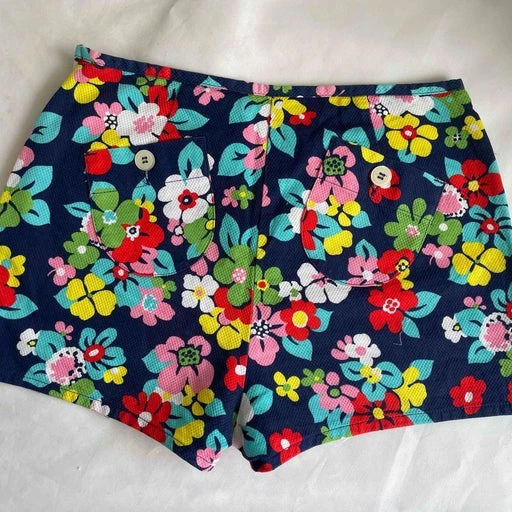 Mini short 90’s à fleurs Benetton. Multicolore. Taille haute, coupe très courte (style années 70) moulante. Made in Italy. 100% coton. Correspond à une taille 34/36. Hauteur fourche : 26,5 cm, longueur entrejambe : 5cm. Longueur totale : 29 cm.