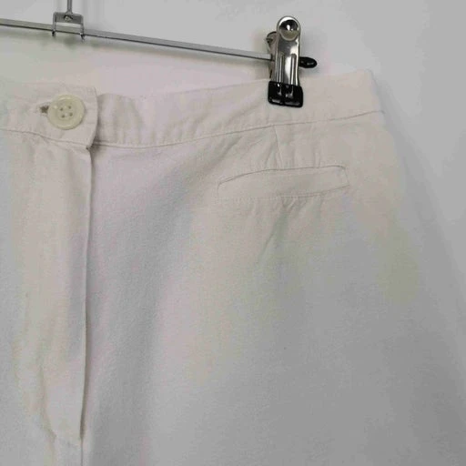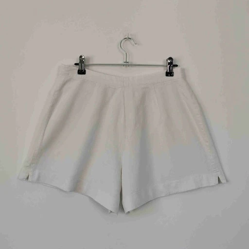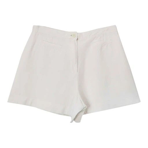 Mini short en coton blanc à pinces, taille haute, deux fausses poches à l’avant.