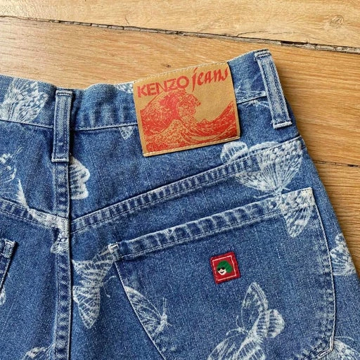 Short en jean Kenzo jean, imprimé papillons.