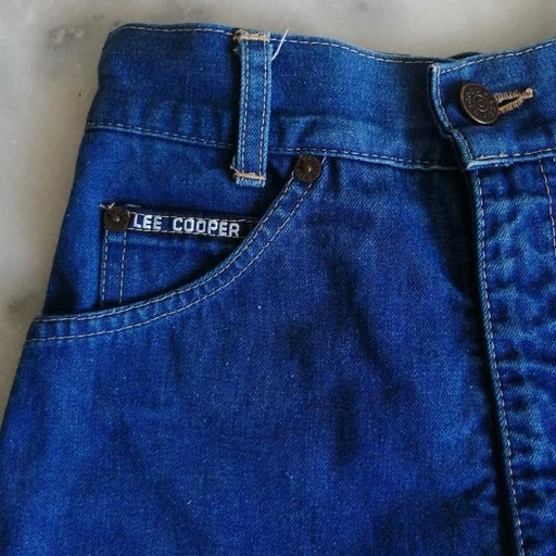Mini short Lee Cooper taille haute couleur bleu moyen. Poches au devant, écusson de la marque sur le côté et au dos. 100% coton. Pièce vintage unique indispensable pour les beaux jours.