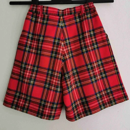 Mini short tartan en laine mélangée. A taille haute et à pinces. 2 poches. Doublé. Taille à passants et élastiquée sur les côtés.