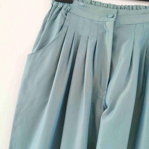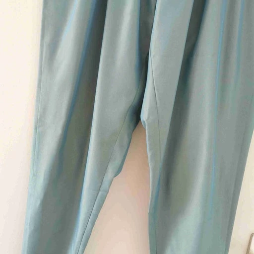 Pantalon taille haute à pinces bleu menthe glacée.