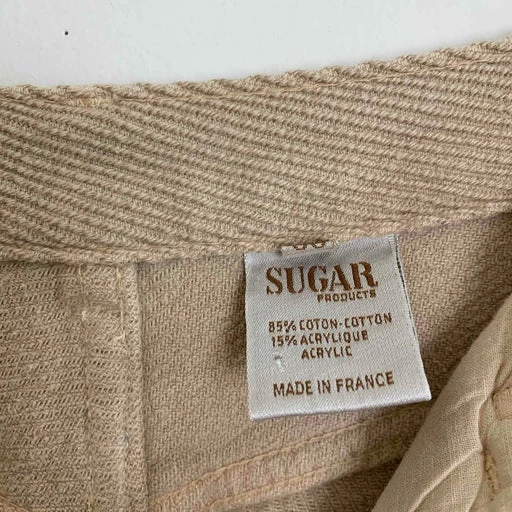 Pantalon beige en sergé de coton de la marque Sugar, fabriqué en France, fermé par un bouton et un zip, deux poches avant et arrière.