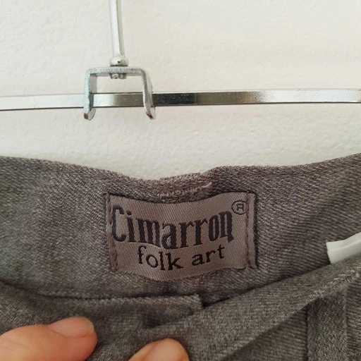 Pantalon flare gris, de la marque Cimarron, avec deux poches se ferme avec une fermeture éclair, mélange laine et viscose.