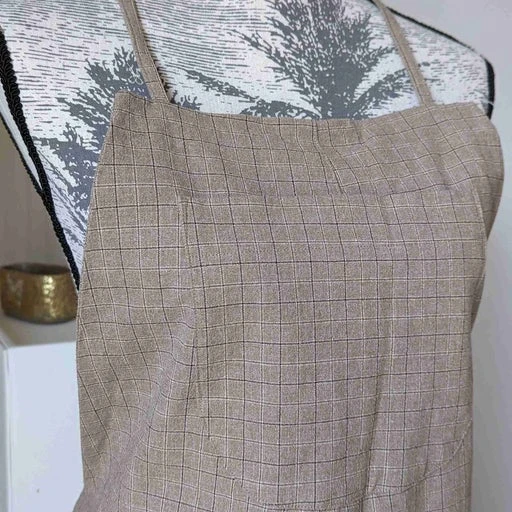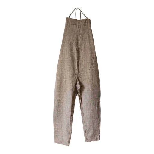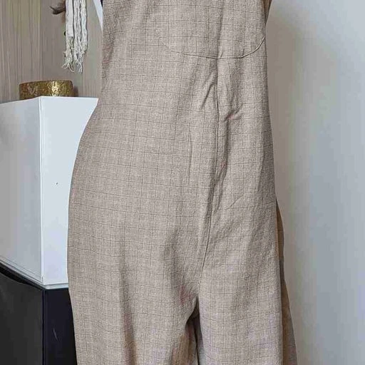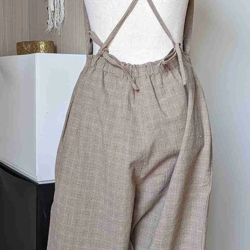 Salopette à carreaux dans les tons de beige, en coton et polyamide. Tissu très doux et stretch. Belle échancrure au dos avec de fines bretelles croisées réglables. Poches poitrine. Convient parfaitement à toutes les morphologies (à la base c’est un vêtement de grossesse). Taille élastique. Jambes 7/8. Made in France.