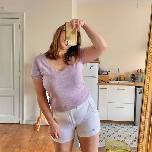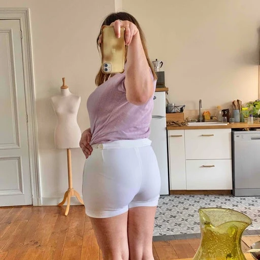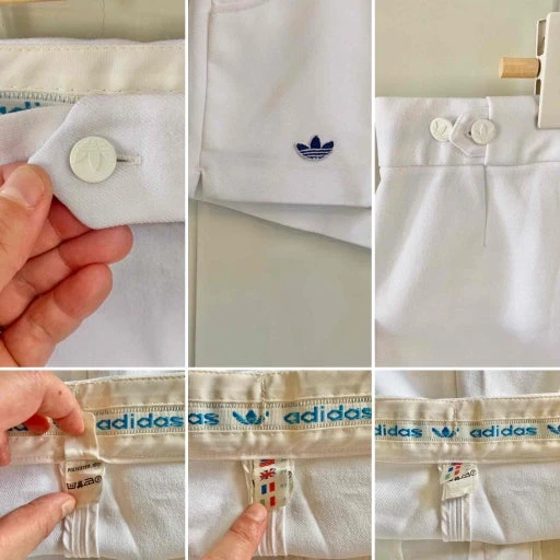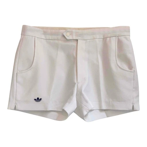 Short blanc 70’s, Adidas, blanc avec broderie bas de jambes et petites fentes côtés, taille 40 à régler au dos par boutons.