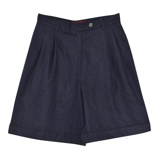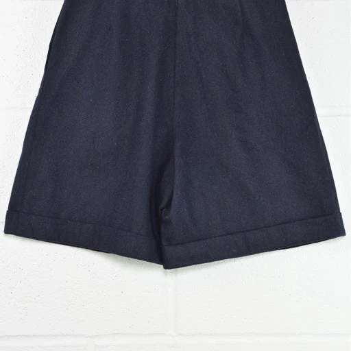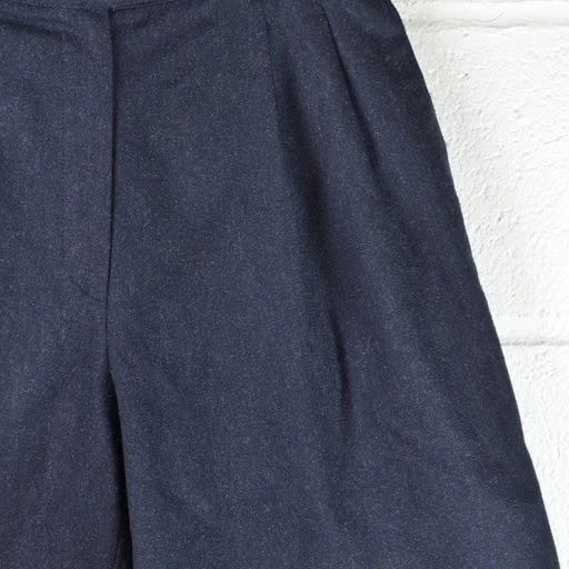 Short en laine vintage. Fermeture bouton et zip à l’avant. Deux poches latérales. Passants pour ceinture. Il manque un bouton intérieur, mais pas gênant pour la fermeture.
