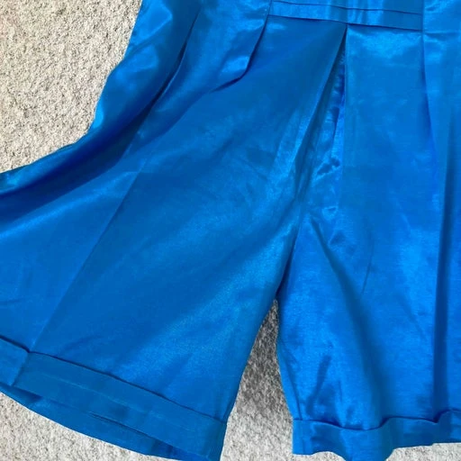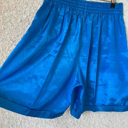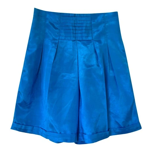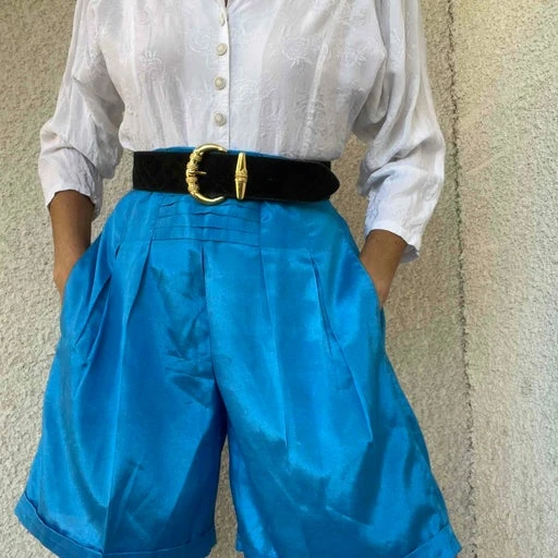 Short taille haute en soie. Longueur genou avec revers. Jambes évasées.