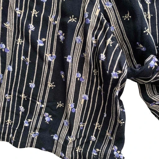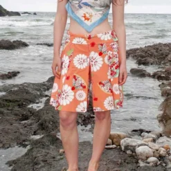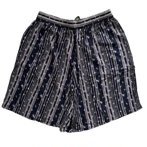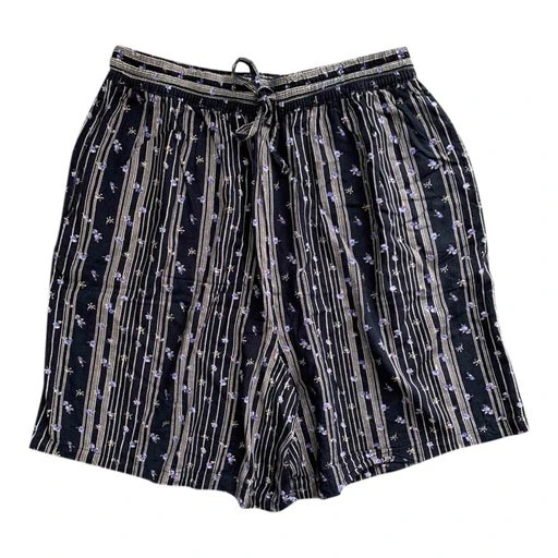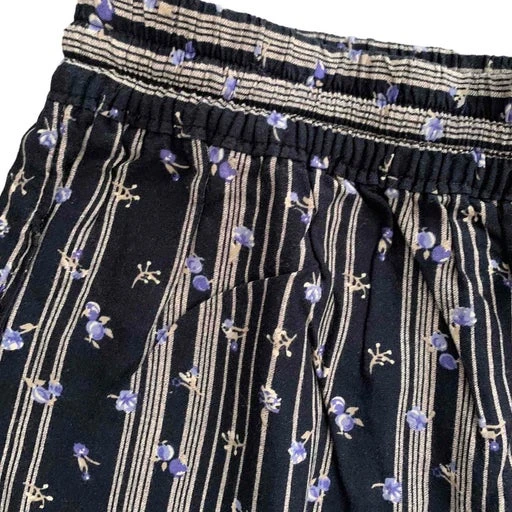 Short fluide a fleurs et rayures, multicolores, matière viscose, taille élastique, pièce des 80’s.