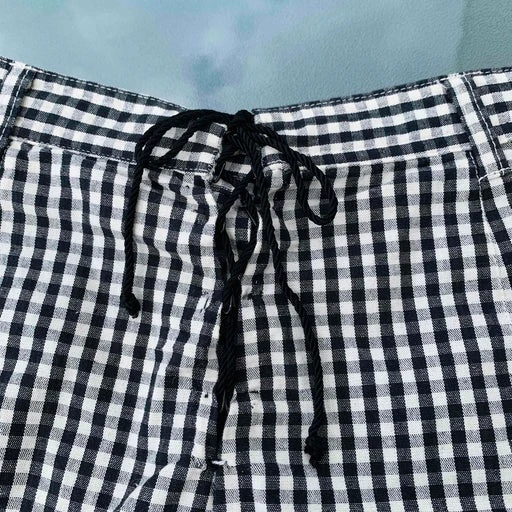 Short court à motifs vichy, lacé au dos, 100% coton.