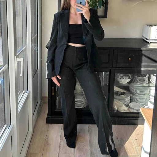 Blazer et pantalon, coupe droite.