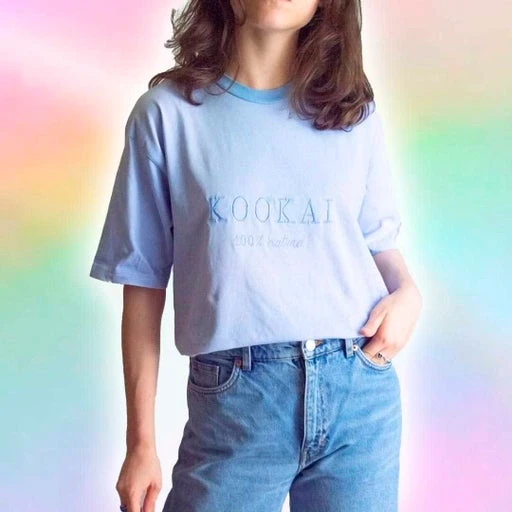 Tee-shirt Kookaï, bleu pastel avec broderies sur l’avant.