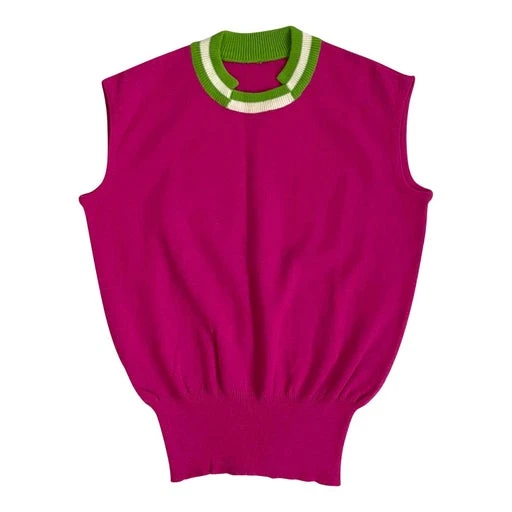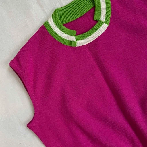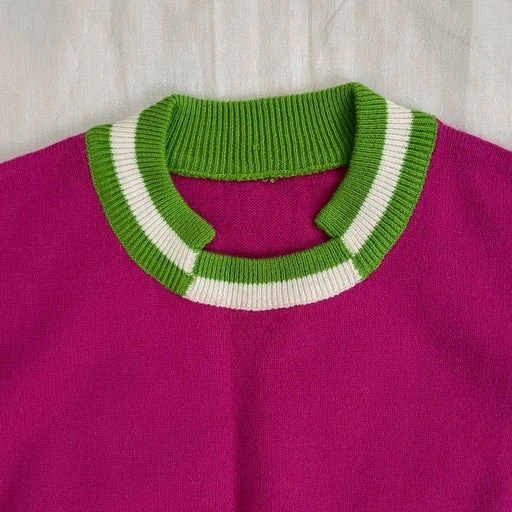 Top en laine, rose fuchsia et vert. Bas élastique. Couleurs ultra vives.